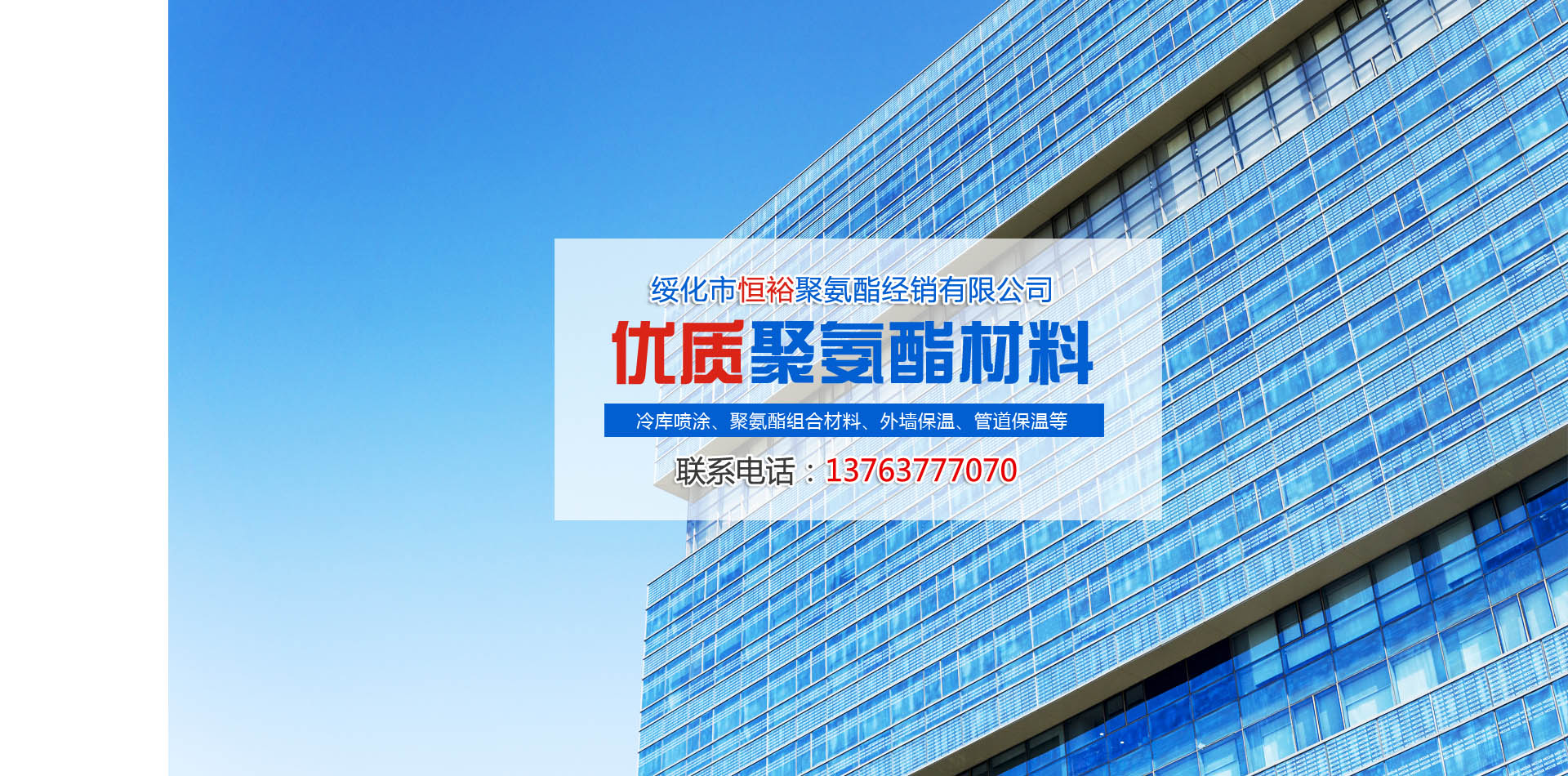 綏化市恒裕聚氨酯經(jīng)銷有限公司是一家集聚氨酯材料 、生產(chǎn) 銷售為 綜合型企業(yè),主要經(jīng)營聚氨酯組合料(黑白料)銷售,另承接冷庫保溫,別墅保溫,外墻保溫 管道保溫等大中小工程 公司擁有30臺(tái)進(jìn)口噴涂設(shè)備,年施工量3000噸。